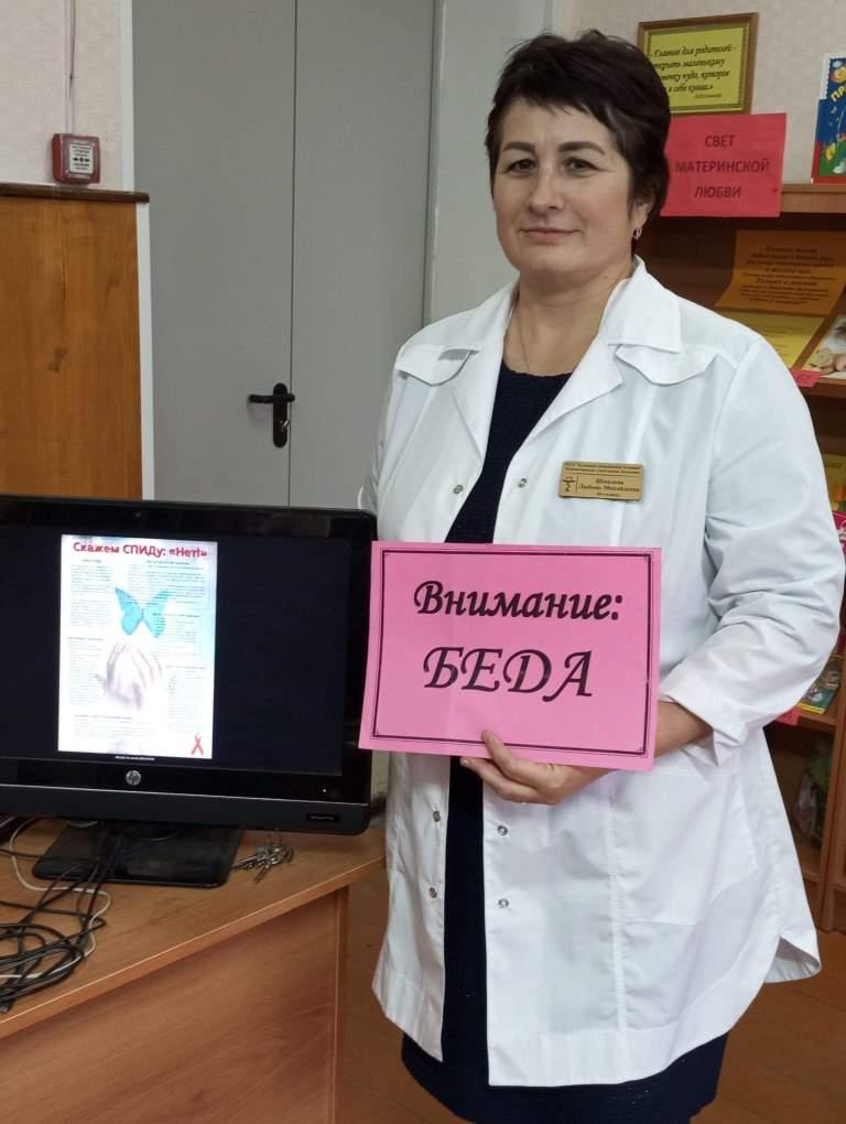 Любовь Михайловна сказала, что символом борьбы со СПИДом является красная ленточка, ни одна акция в этой области не обходится сейчас без неё. Также рассказала читателям о ВИЧ - инфекции, каким образом происходит заражение этим вирусом, о мерах профилактики заболевания.