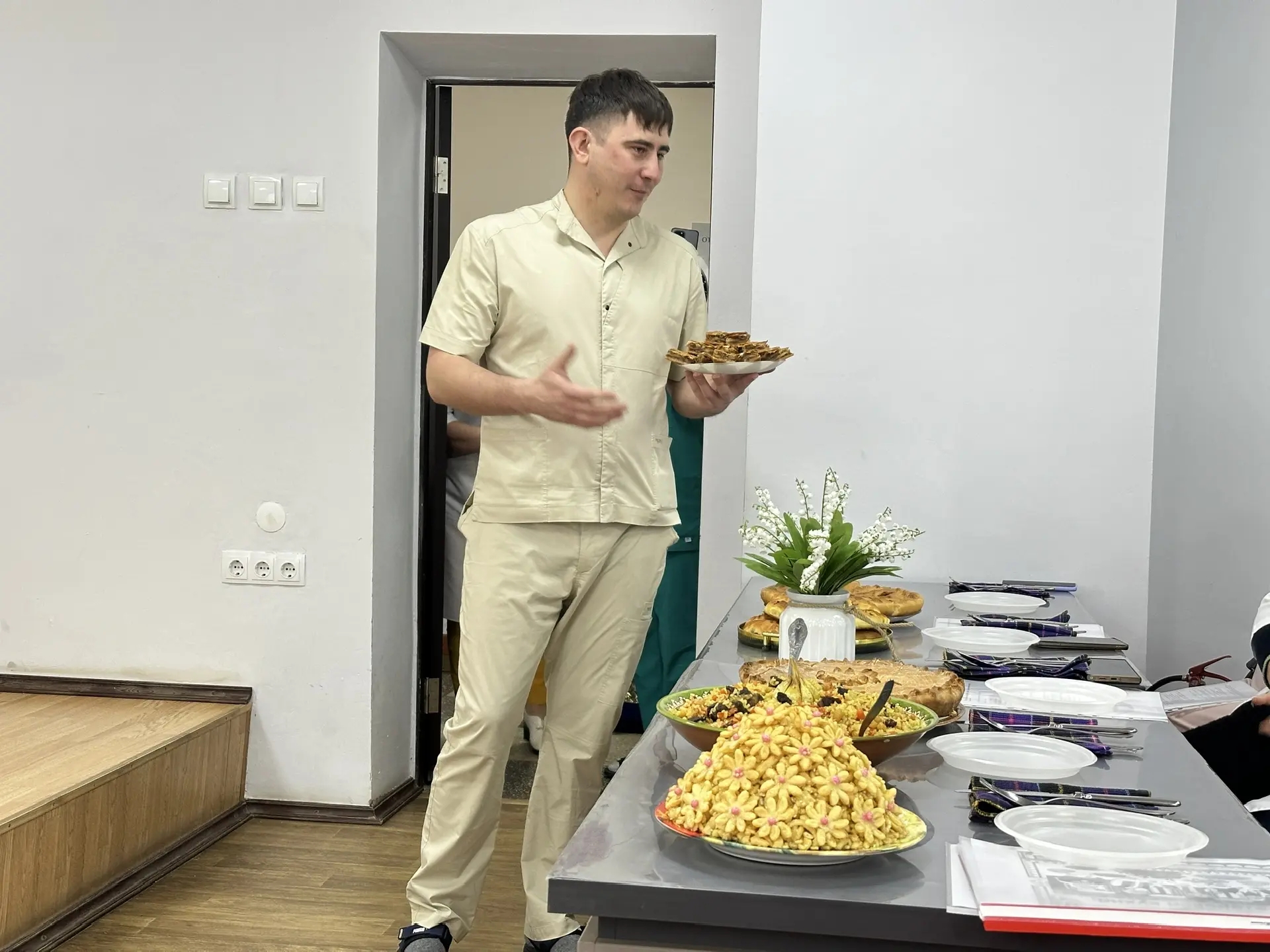 В преддверии Международного женского дня и в Год единства народов России в больнице прошел кулинарный фестиваль, ставший ярким событием, объединившим медицинский персонал. Атмосфера праздника витала в воздухе с самого утра: расставлены столы с угощениями, звучала легкая музыка, создавая по-настоящему торжественное настроение. Целью фестиваля было не только порадовать гостей вкусными блюдами, но и укрепить чувство товарищества и взаимной поддержки, что особенно важно в условиях больничной жизни.